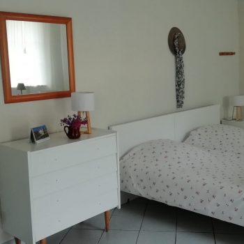 Saint-Martin est le plus grand de nos gîtes (54m2). Il est doté d’une double exposition. Il permet d’accueillir de 2 (à 5) personnes. La pièce à vivre est conviviale avec sa cuisine équipée (lave-vaisselle) et son coin salon avec canapé convertible (1 à 2 personnes). La chambre dispose d’un couchage grand confort (200 x 200 séparable en deux lits simples) et d’un lit 2 couchages superposés (90 x 200). Comme tous nos gîtes, une salle d’eau (lavabo, douche et WC) et une petite terrasse privative complètent cet ensemble.